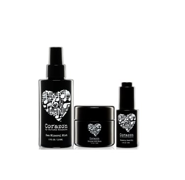 Discover the perfect introduction to Corazón skincare. This curated mini ritual includes everything you need for a quick self-care reset: